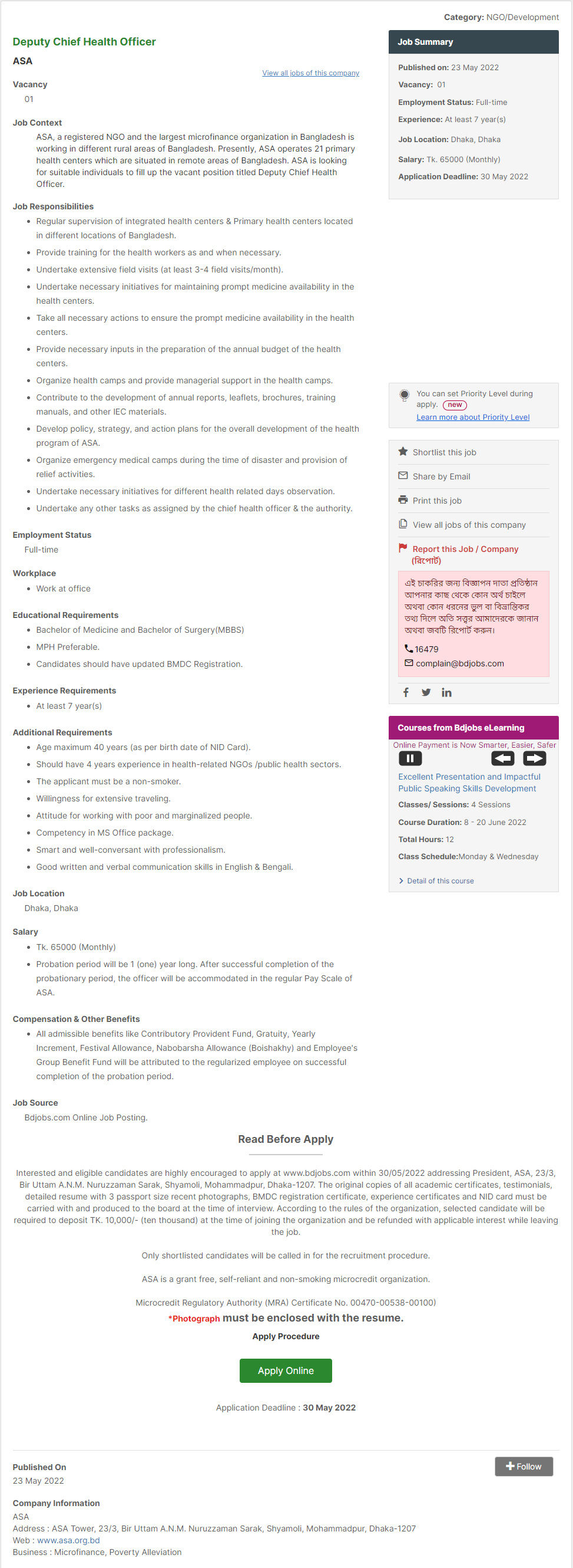 The application is very cool of ASA NGO Job Circular. If you have interested to apply ASA Job Circular in 2022, then you have to send your job application through the bdjobs.com website. Already we have added an online job circular view and online application link in the above section. Please See the online application link in the above sections and send your job application within a short time.
