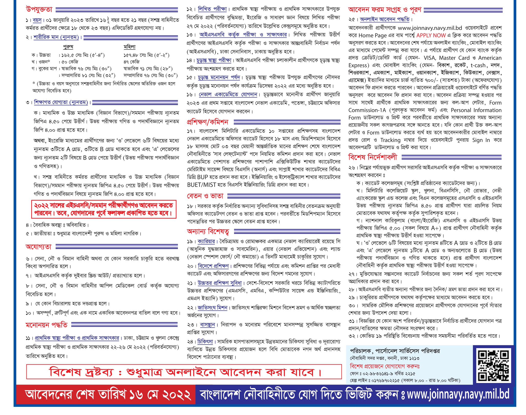 Those who have come to our web page for the purpose of downloading the Bangladesh Navy Job Circular 2022 PDF file, can easily download the PDF file of Bangladesh Navy Job Circular by clicking on the link below which has been published by the authorities on their official website for Bangladesh Navy job seekers.