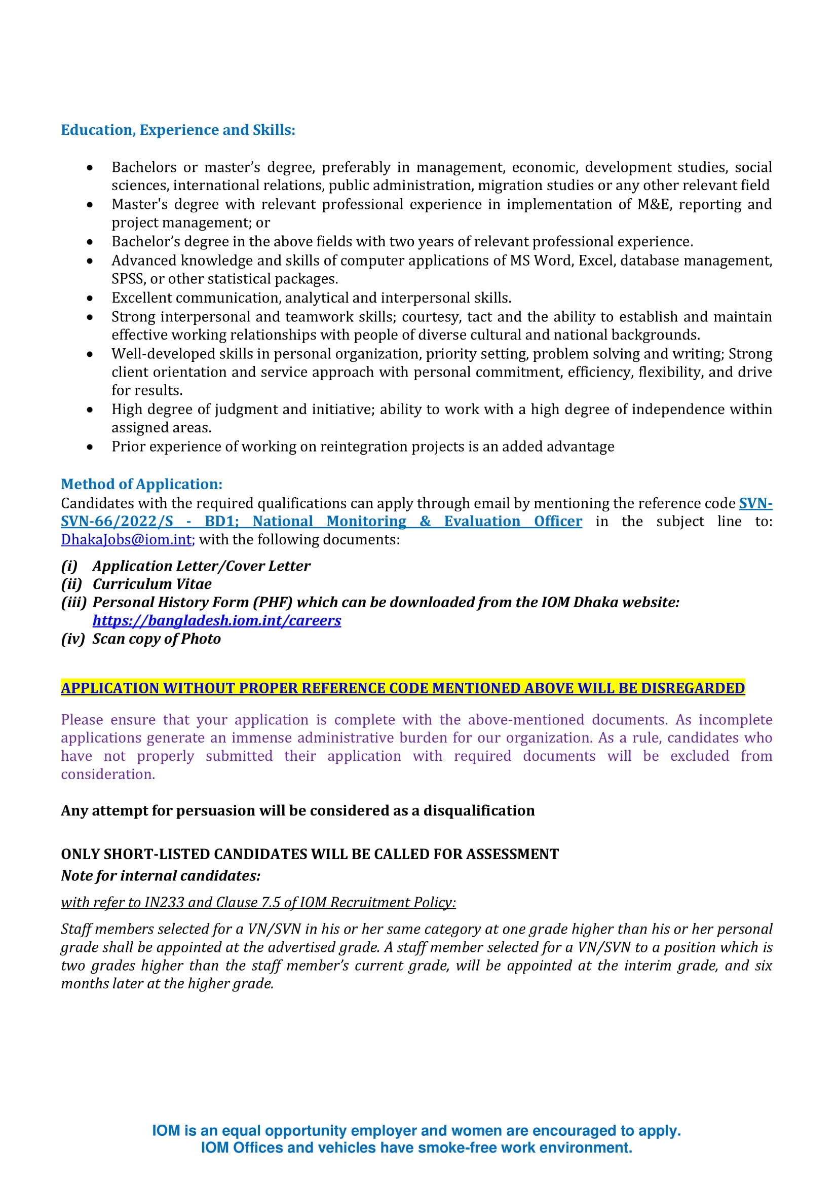 IOM International Organization for Migration new job circular 2022 PDF file image format published here for the jobless people in Bangladesh. We have collected International Organization for Migration Job Notice PDF file from the official website. Check below International Organization for Migration Job Circular 2022 PDF file download link.